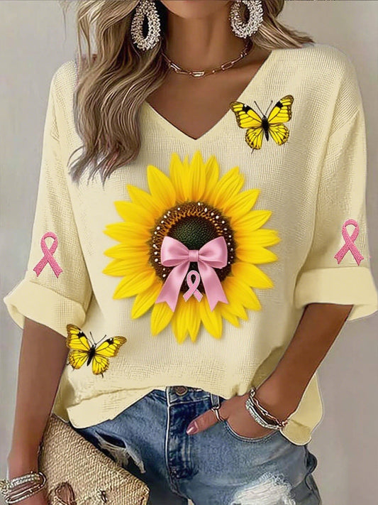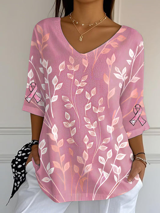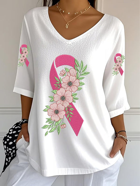 Γυναικείο καρκίνο του μαστού κορδέλα εκτύπωση βαμβάκι κορυφαίο