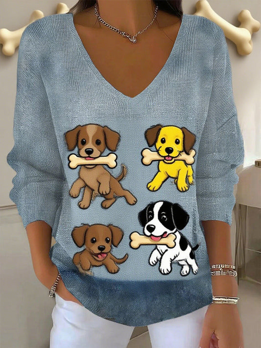 Γυναικείο Retro ζώο εκτύπωση Καθαρό μακριά μανίκι πάνω απ'τον