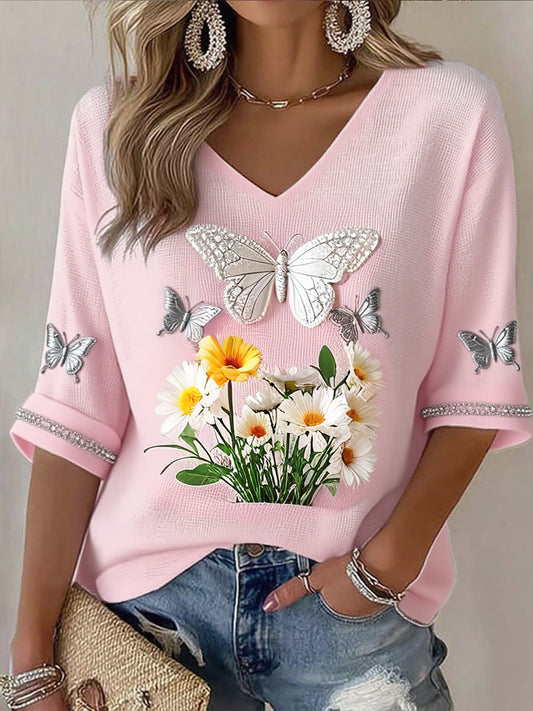 Γυναικείο Vintage πεταλούδα ανθρακική τέχνη V-λαιμό κορυφαίο