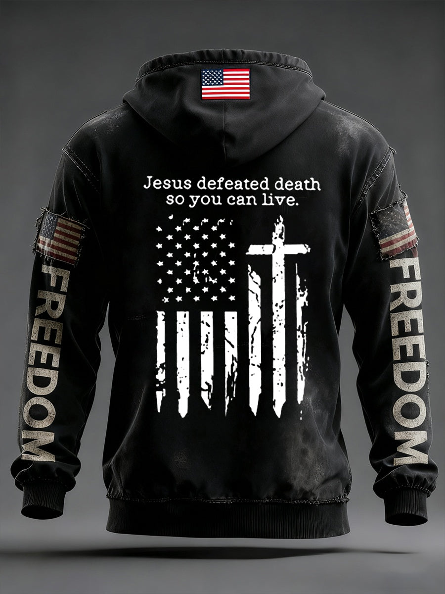 Ανδρικά "Ελευθερία δεν είναι δωρεάν" αμερικανική σημαία εκτύπωση Casual μακριά μανίκι μούστου