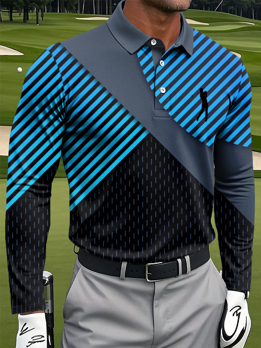Ανδρικά ρετρο πολύχρωμα ριγέ γεωμετρική εκτύπωση Casual μακριά μανίκι Polo πουκάμιση