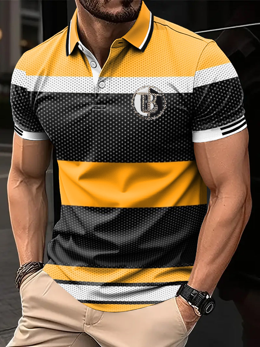 Ανδρικά Retro Πολύχρωμα ρίγα τέχνη Εκτύπωση περιστασιακή επιχείρηση Polo πουκάμιση