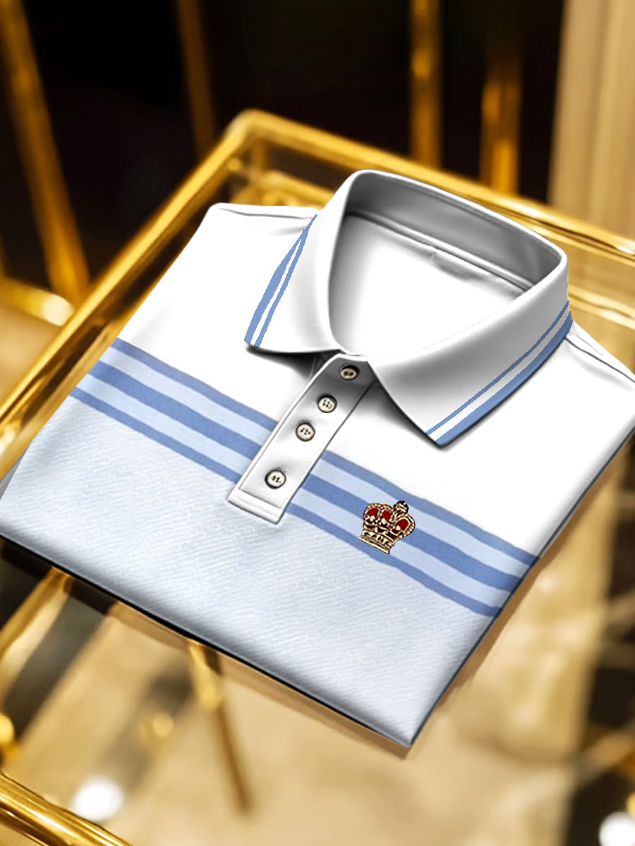 Ανδρικό μπλε και λευκό υφή POLO πουκάμιση