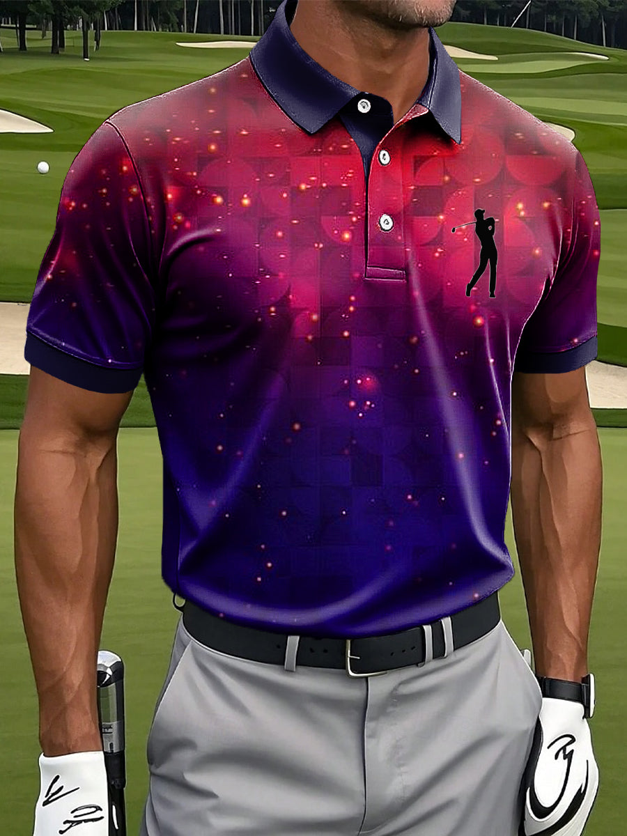 Ανδρών Retro Gradient πολύχρωμο γεωμετρικό εκτύπωμα Casual Business Polo πουκάμιση