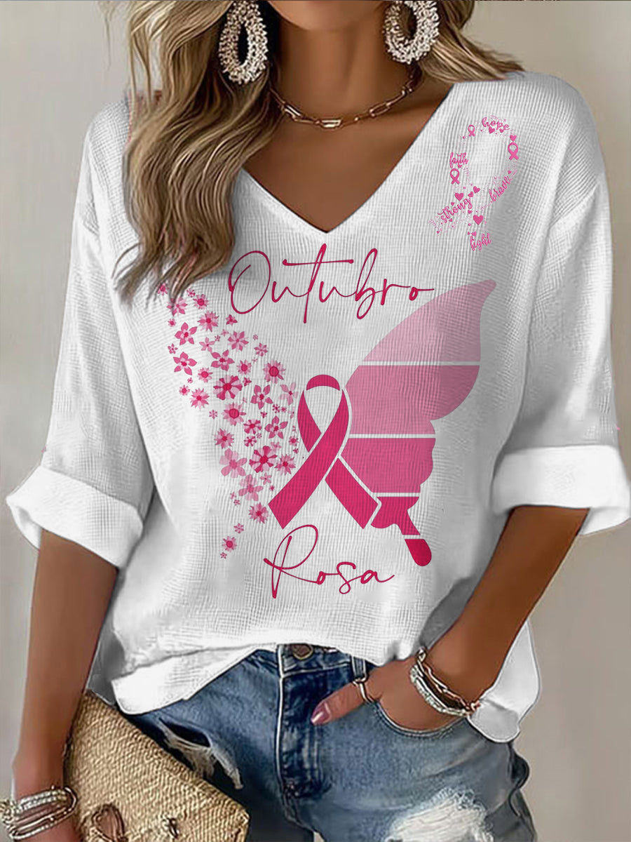 Γυναίκες πεταλούδα καρκίνο του μαστού Θέμα Casual V-λαιμό Κοντό T-shirt