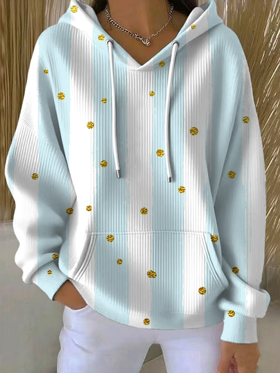 Γυναίκες χαριτωμένο χρυσό ριγέ ελαφρύ μπλε κουκουλοφόρο