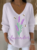 Γυναικεία λεβάντα λουλούδια κέντημα ανοιχτό μωβ πουλόβερ λαιμό