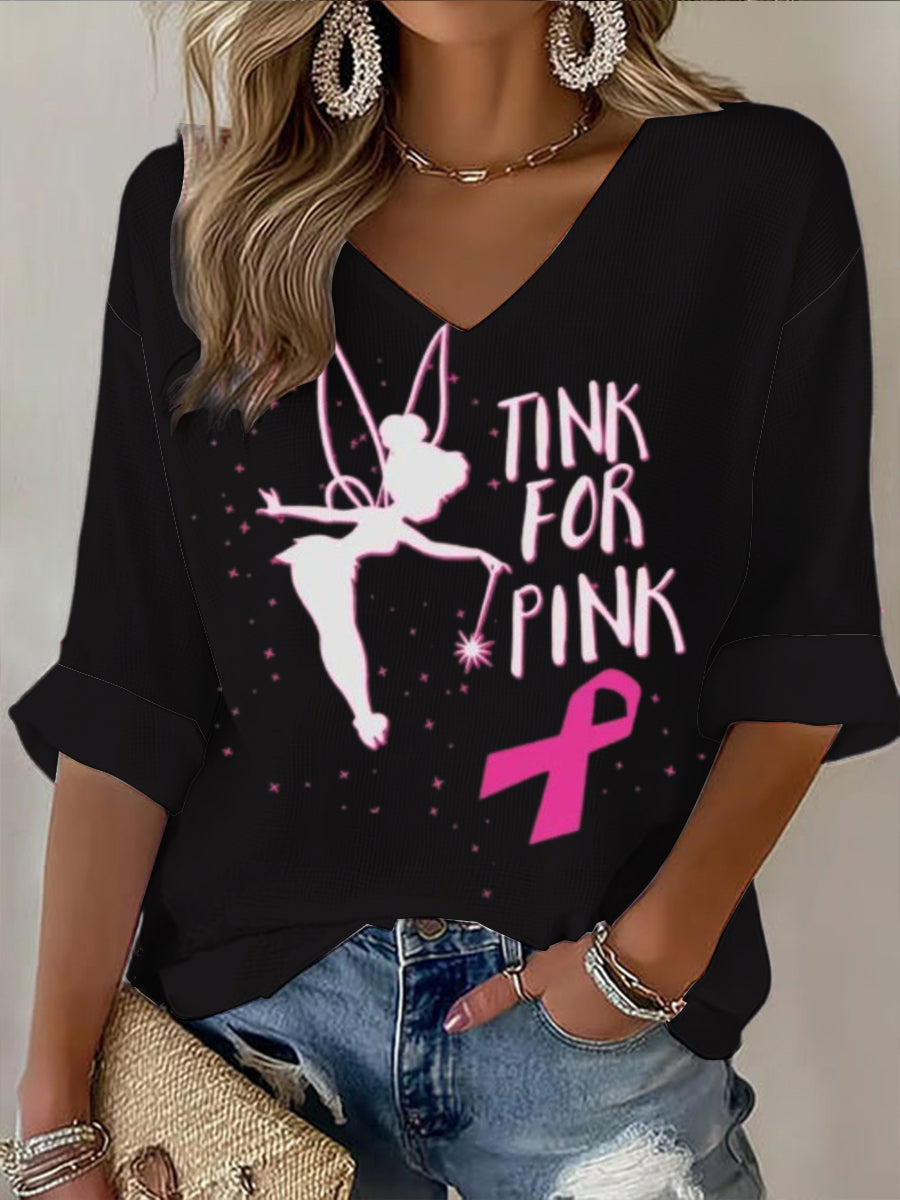 Γυναικεία μαύρη κορδέλα τυπωμένη V-λαιμό μακρυμάνικη πουκάμιση