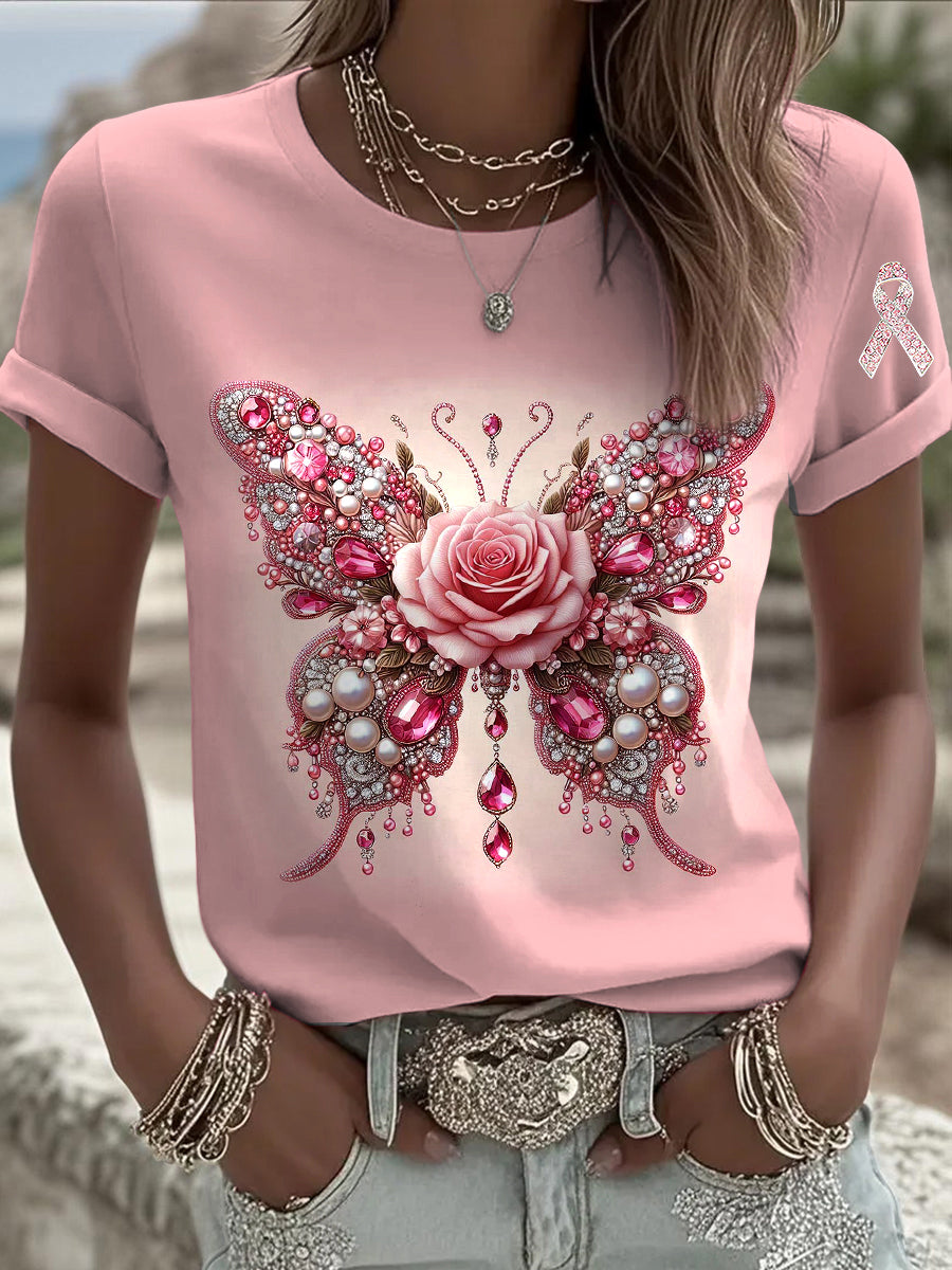 Γυναικεία πεταλούδα ανθοπωλείο ρινόπετρα εκτύπωση περίεργο T-Shirt