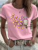 Γυναικεία ροζ λουλουδιά και πτηνών τέχνης V-λαιμό κορυφαίο