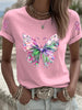 Γυναικεία Ροζ πεταλούδα Ρηνανόπετρα Καθόλου T-Shirt