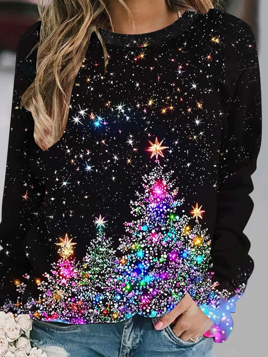 Γυναικεία Retro Χριστουγεννιάτικη τέχνη Εκτύπωση Καθαρό Φούτεργο