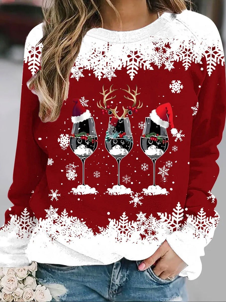 Γυναικεία Retro Χριστουγεννιάτικη τέχνη Εκτύπωση Καθαρό Φούτεργο
