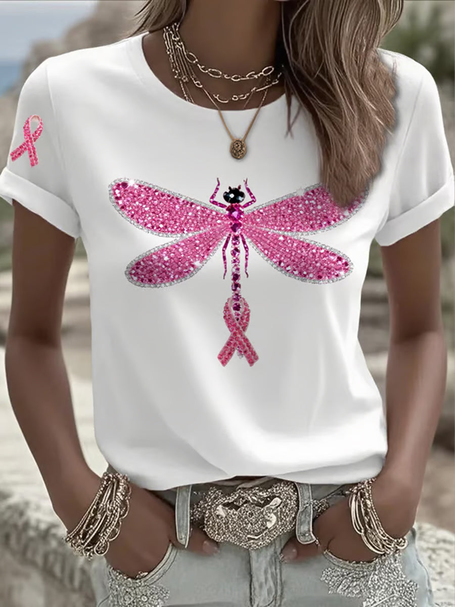 Γυναικείο καρκίνο του μαστού κορδέλα εκτύπωση βαμβάκι T-Shirt