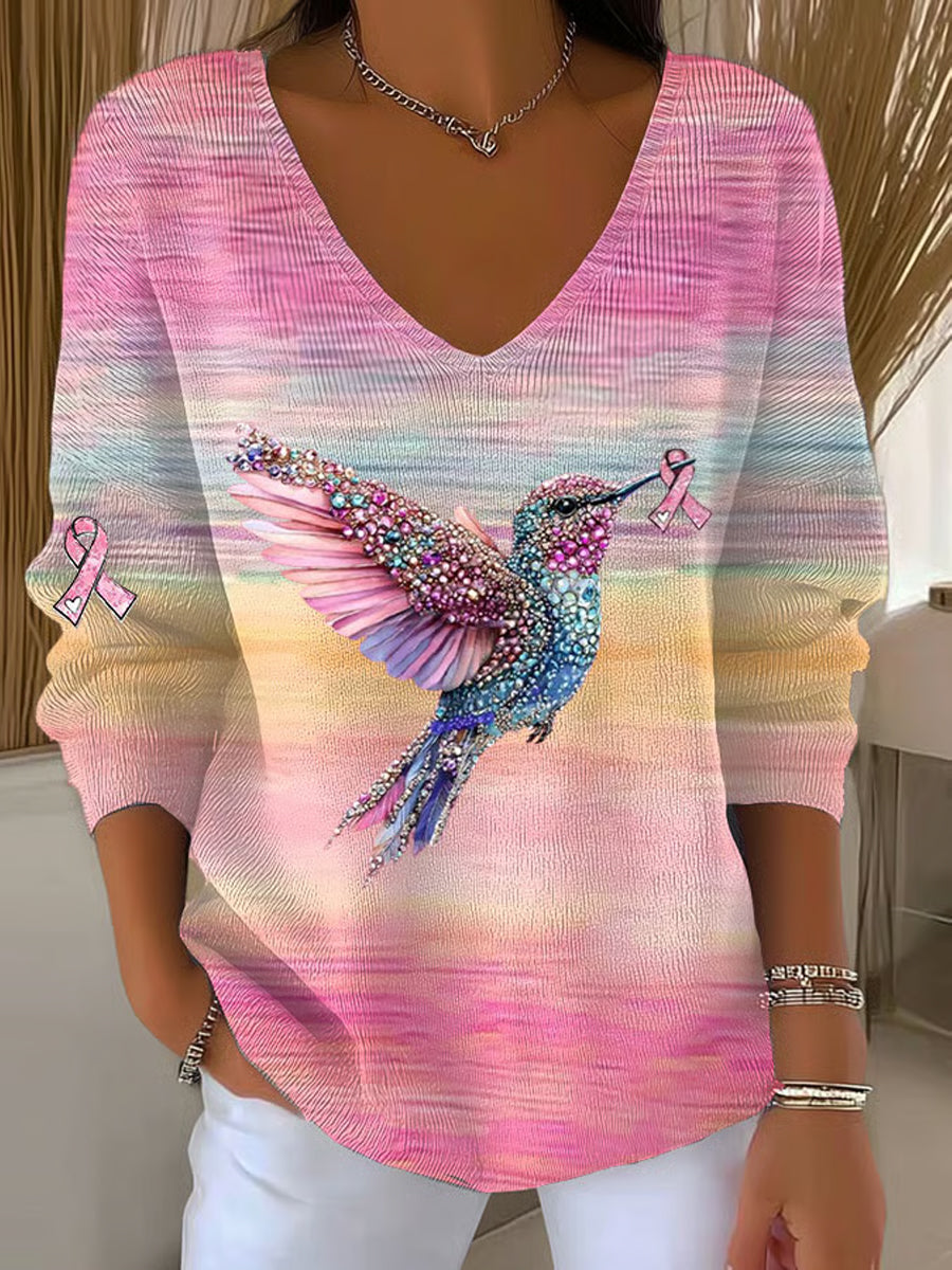 Γυναικείο καρκίνο του μαστού κορδέλα ζώου εκτύπωση βαμβάκι μακρυμάνικο T-Shirt