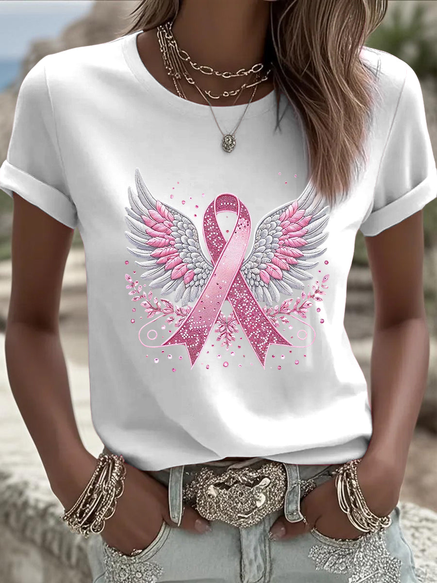 Γυναικείο καρκίνο του μαστού κορδέλα φτερά παγωτά εκτύπωση περιστασιακό T-shirt