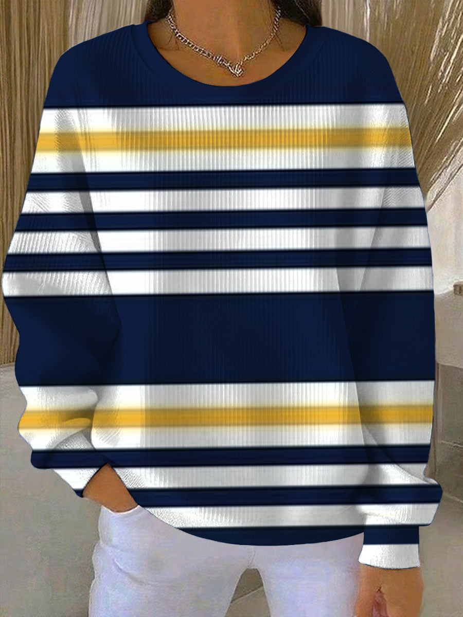 Γυναικείο κλασικό ναυτικό, λευκό και κίτρινο ριγέ πουλόι