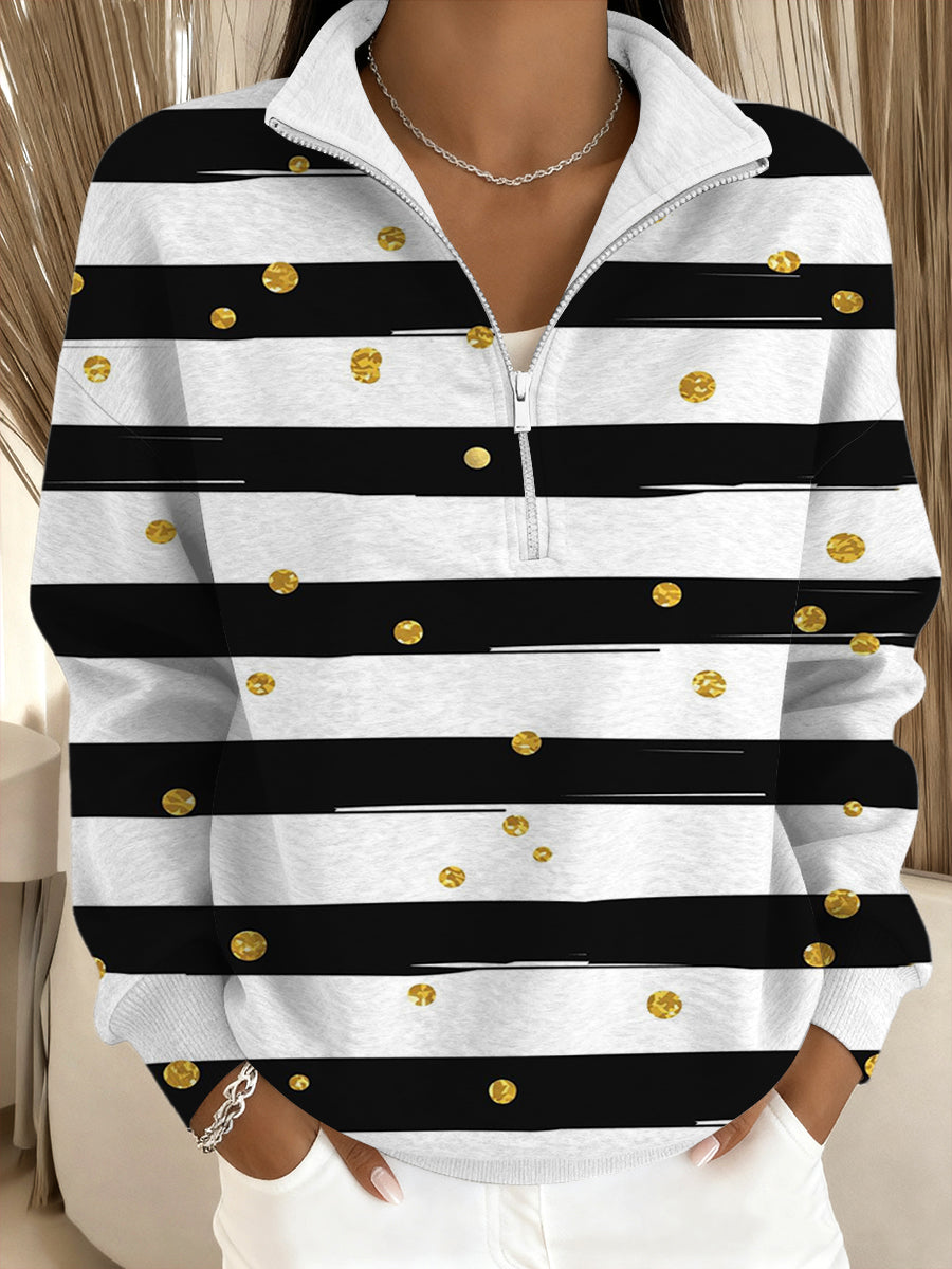 Γυναικείο λαμπερό μαύρο - λευκό ρίγες & χρυσό κοκκίνο στάνταρ - κολάρο
