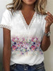 Γυναικείο περιστασιακό V-λαιμό λουλούδια εκτύπωση κοντό μανίκι κορυφαίο T-Shirt
