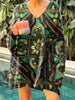 Γυναικείο V-λαιμό μαύρο και πράσινο πουλόβερ τυπωμένος