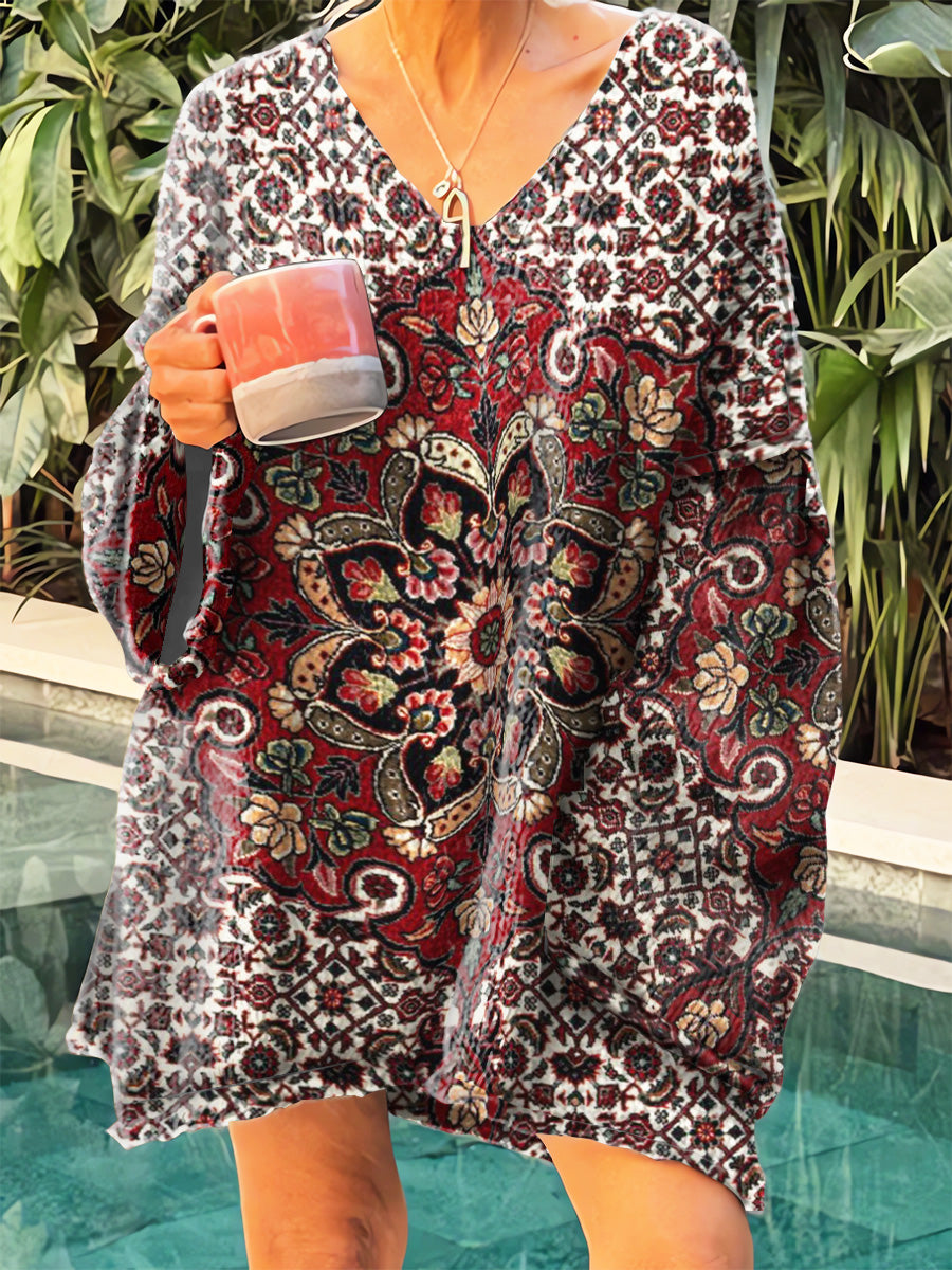 Γυναικείο V-λαιμό παραδοσιακό πουλόβερ εκτύπωσης