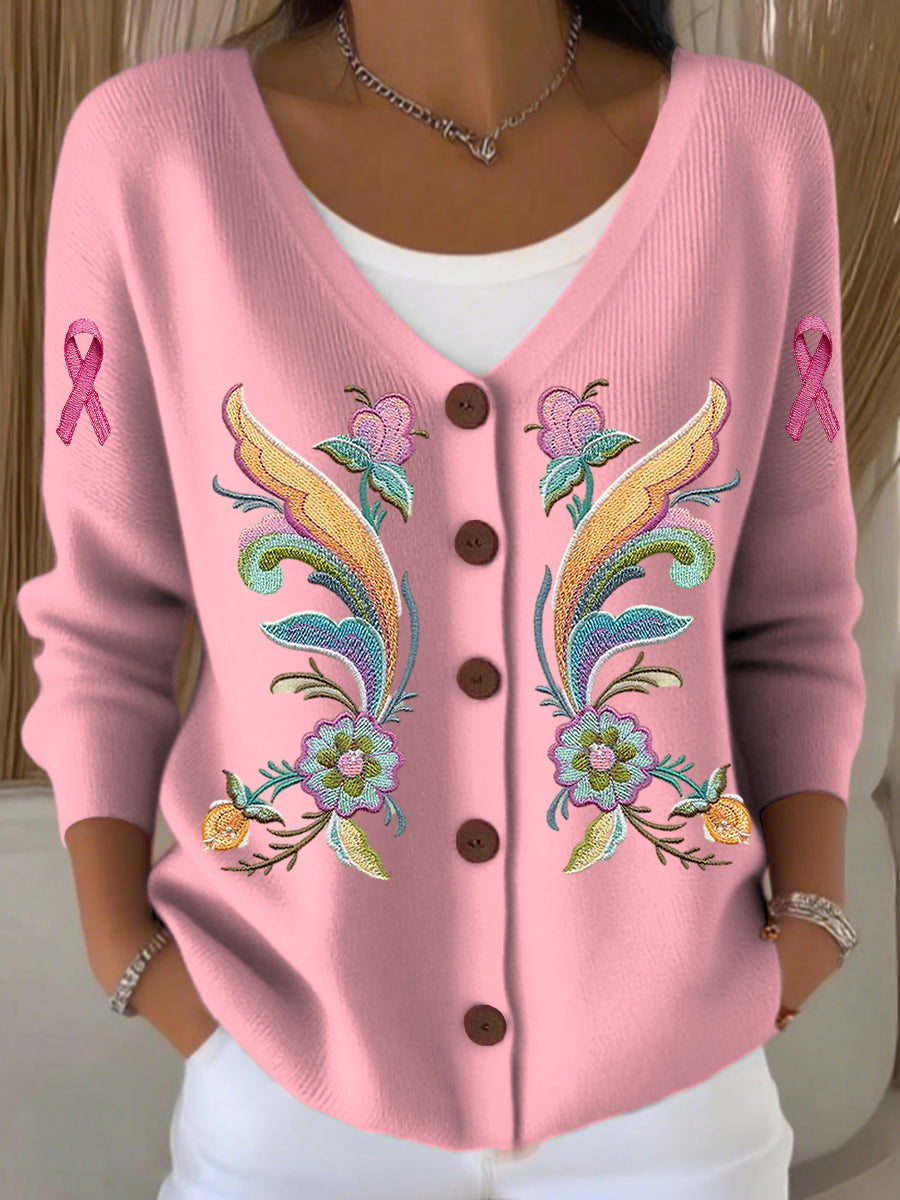 Γυναικείο Vintage Συμμετρική λουλούδια V-λαιμό πλεκτά