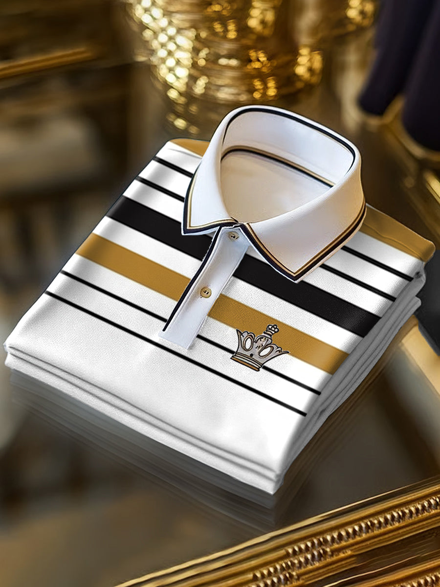 Κλασική ριγέ τέχνη εκτύπωση επαγγελματικό κοντό μανίκι Polo πουκάμισα