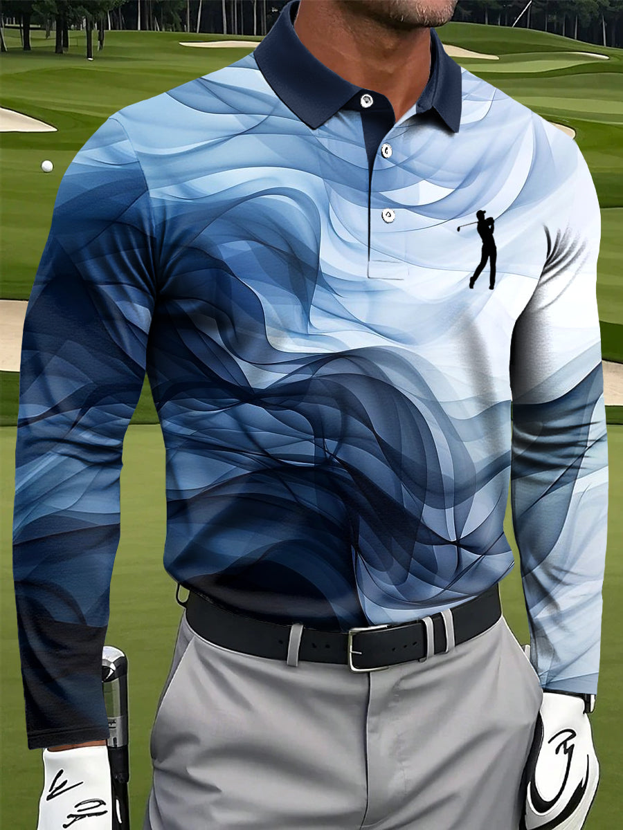 Ανδρικά Retro υφή τέχνης τέχνης εκτύπωση περίπτωση μακριά μανίκι Polo πουκάμιση