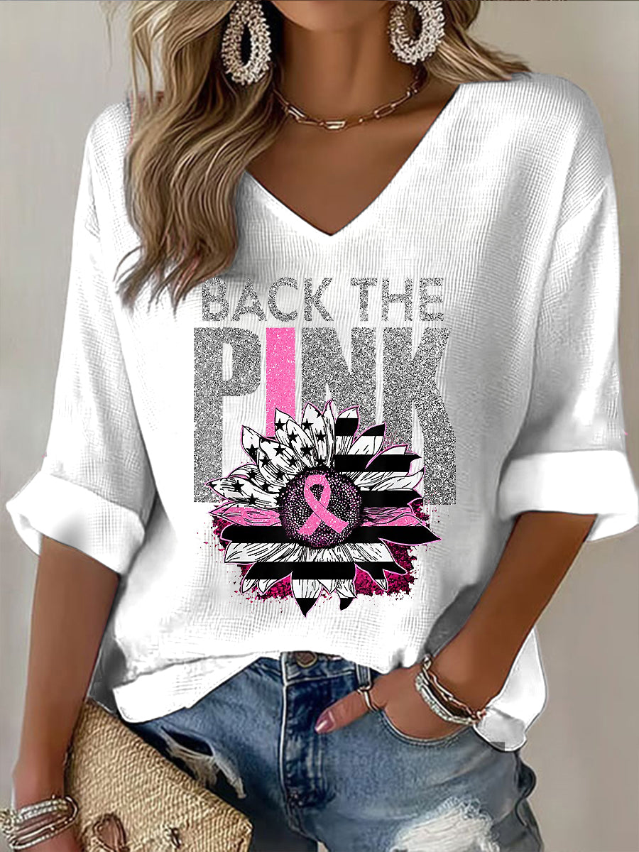 Γυναικείο καρκίνο του μαστού ευαισθητοποίηση κορδέλα περιστασιακό V-Neck top.