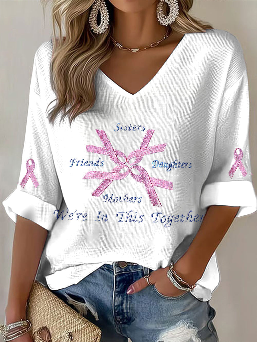 Γυναικείο ροζ κορδέλα περιστασιακό V-Neck Top V