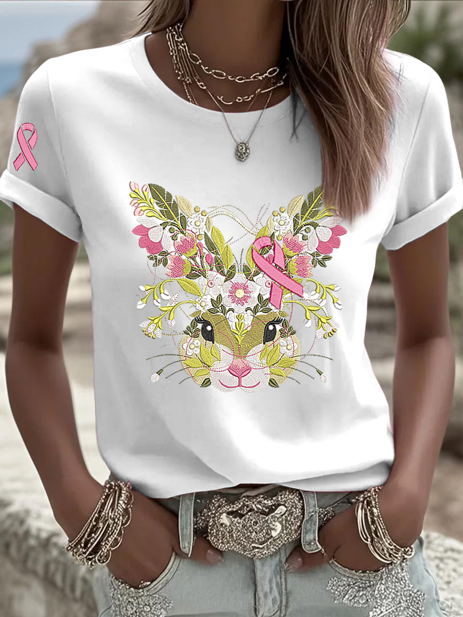 Γυναικείο Vintage κουνέλι Ρίβδου Καθαρό T-Shirt