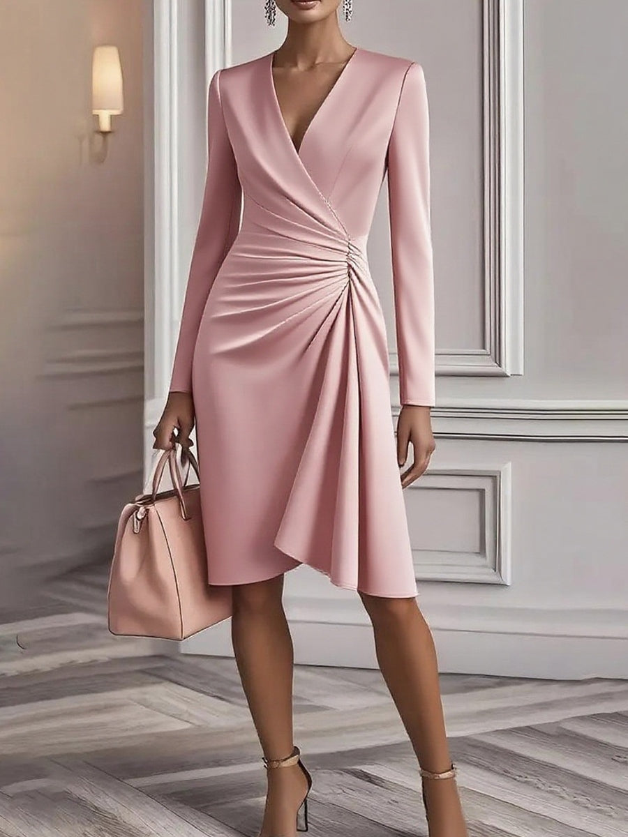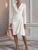 Γυναικείο Retro διασταύρωση V-λαιμό μέση στερεό χρώμα μακριά μανίκι φόρεμα μακριά