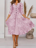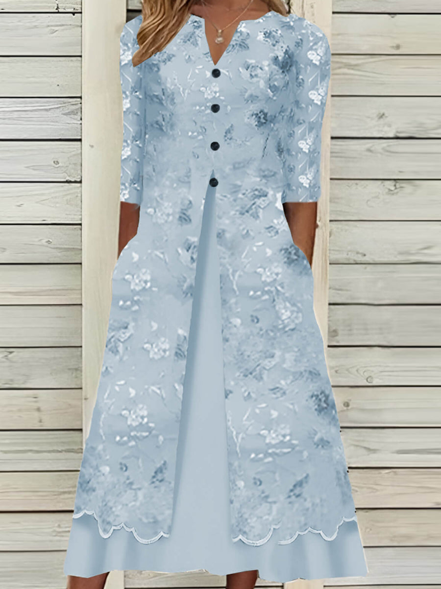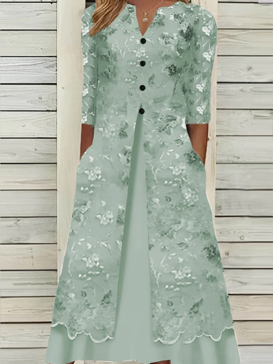 Γυναικεία ανθισμένη τέχνη εκτύπωση τσέπη V-λαιμό φόρεμα μανίκι