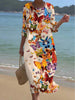 Γυναικείο περιστασιακό στρογγυλό λαιμό λουλούδια τέχνη εκτύπωση τύπωση τύπωμα φόρεμα ταύδιο