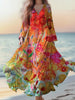 Retro Boho εφαρμογή ανθοπωλείου Εκτύπωση Vintage Chic V-λαιμό βαμβάκι μακριά μανίκι φόρεμα Μίνι