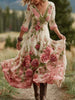 Εκτύπωση Vintage V-λαιμό μακρυμάνικο βαμβάκι Maxi φόρεμα βαμβάκι