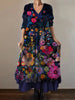 Retro Boho Floral Εκτύπωση Vintage V-Neck διπλό κομμάτι βαμβάκι μακριά μανίκι φόρεμα Midi