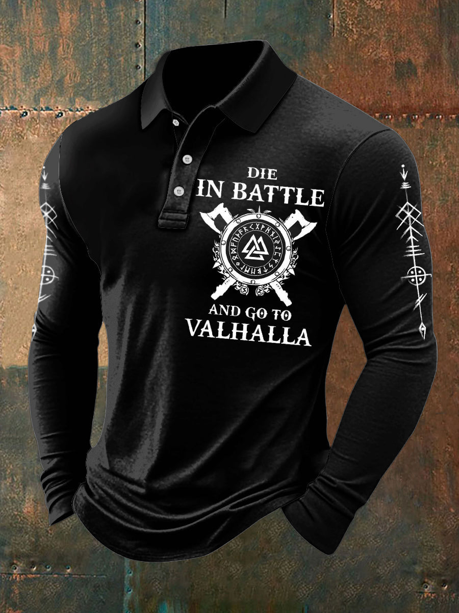 Ανδρικό πουκάμισο πόλο με τύπωμα Viking, μακρύ μανίκι