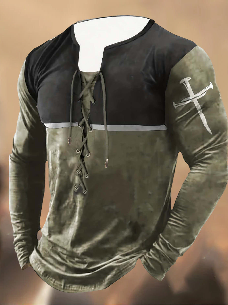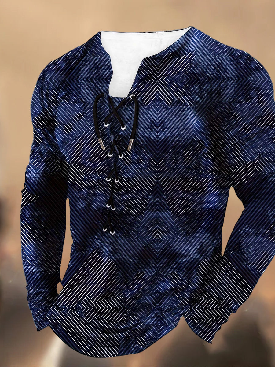 Ανδρικά Retro εκτύπωση Δαντέλα-Up κουκούλα μακριά μανίκι περιστασιακή κορυφή κορυφαίο