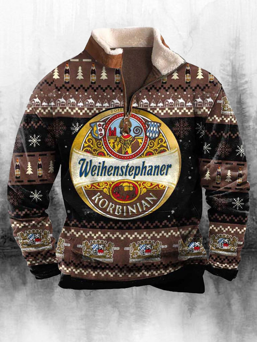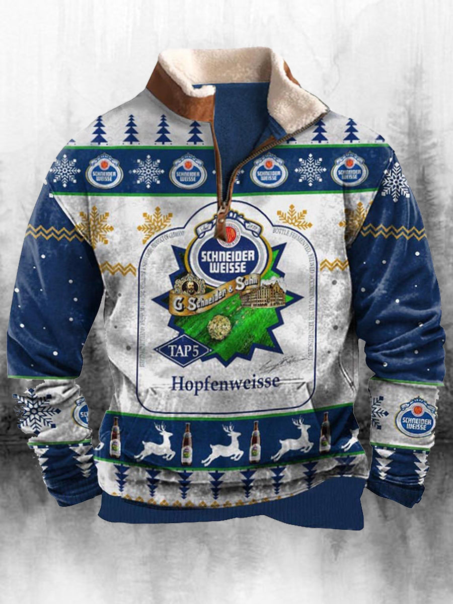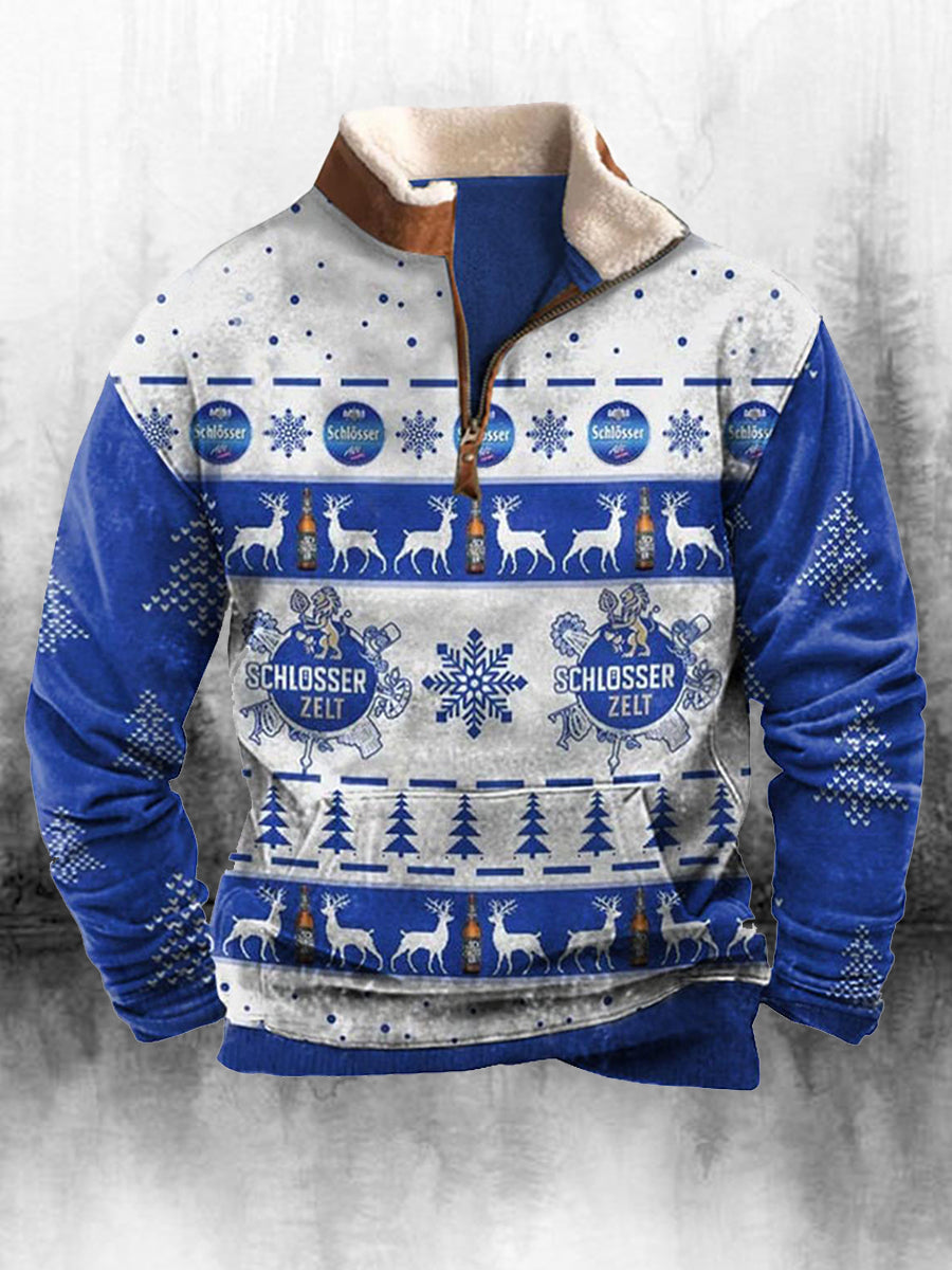 Ανδρικά ρετρο Χριστούγεννα εκτύπωση ψηλό λαιμό μισό φερμουάρ μακριά μανίκι πάνω απ' το κορυφαίο