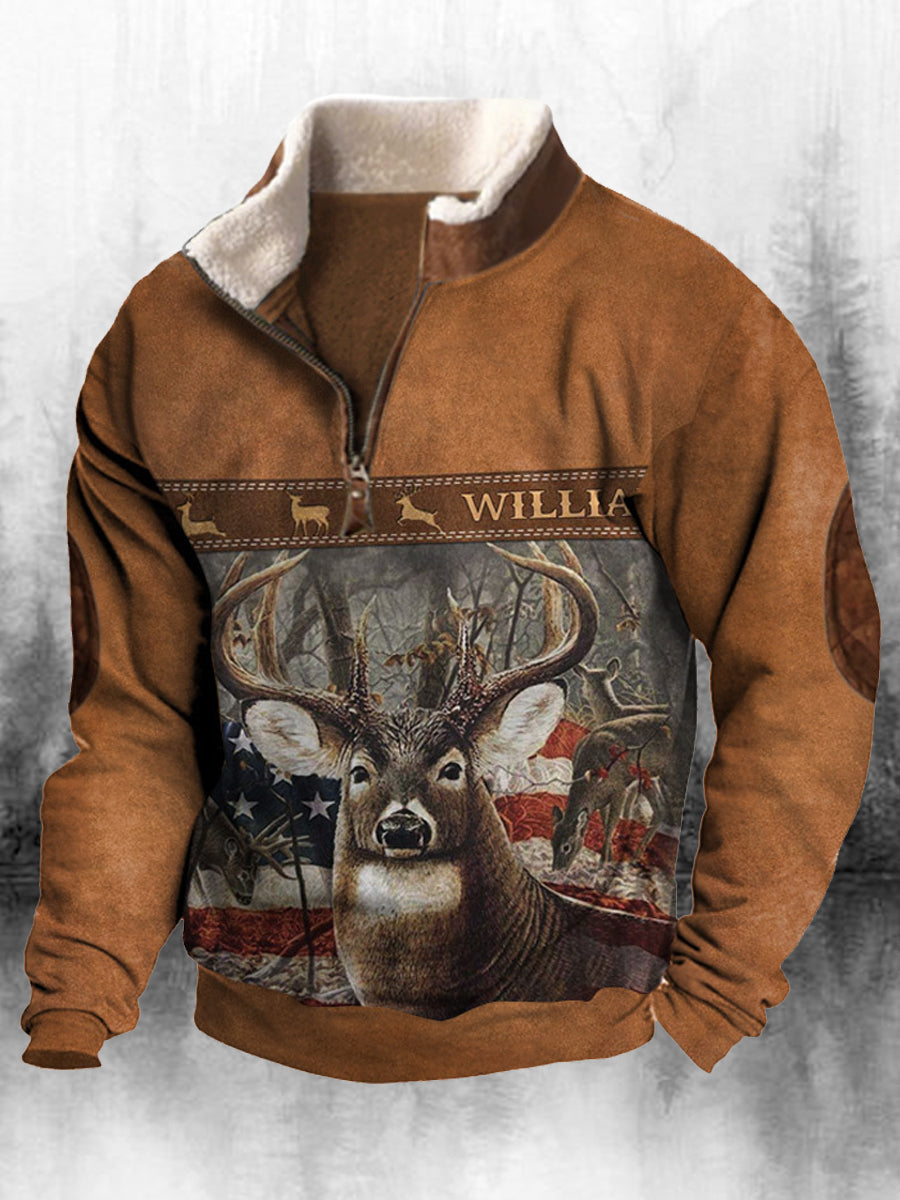 Ανδρικά Retro Western Εκτύπωση ψηλό λαιμό μισό Zip μακριά μανίκι πάνω από το κορυφαίο
