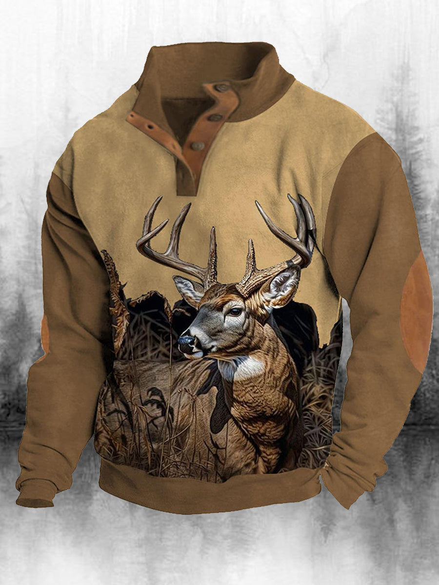 Ανδρικά Retro Western Εκτύπωση Χαλαρή 4 κουμπί κουμπί λαιμό μακριά μανίκι κορυφαίο