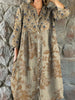 Retro Boho Ανθοπωλεία Τέχνης Εκτύπωση Vintage Chic V-Neck κουμπί μέχρι μακριά μανίκι φόρεμα Midi