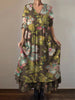 Retro Boho Floral Εκτύπωση Vintage V-Neck διπλό κομμάτι βαμβάκι μακριά μανίκι φόρεμα Midi