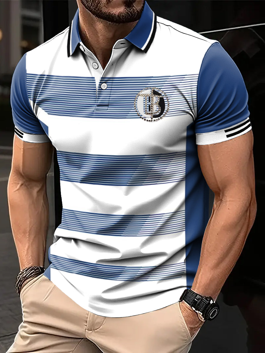 Ανδρική Ρέτρο λωρίδα χρώμα μπλοκ τέχνης Εκτύπωση περιστασιακή επιχείρηση Polo πουκάμιση