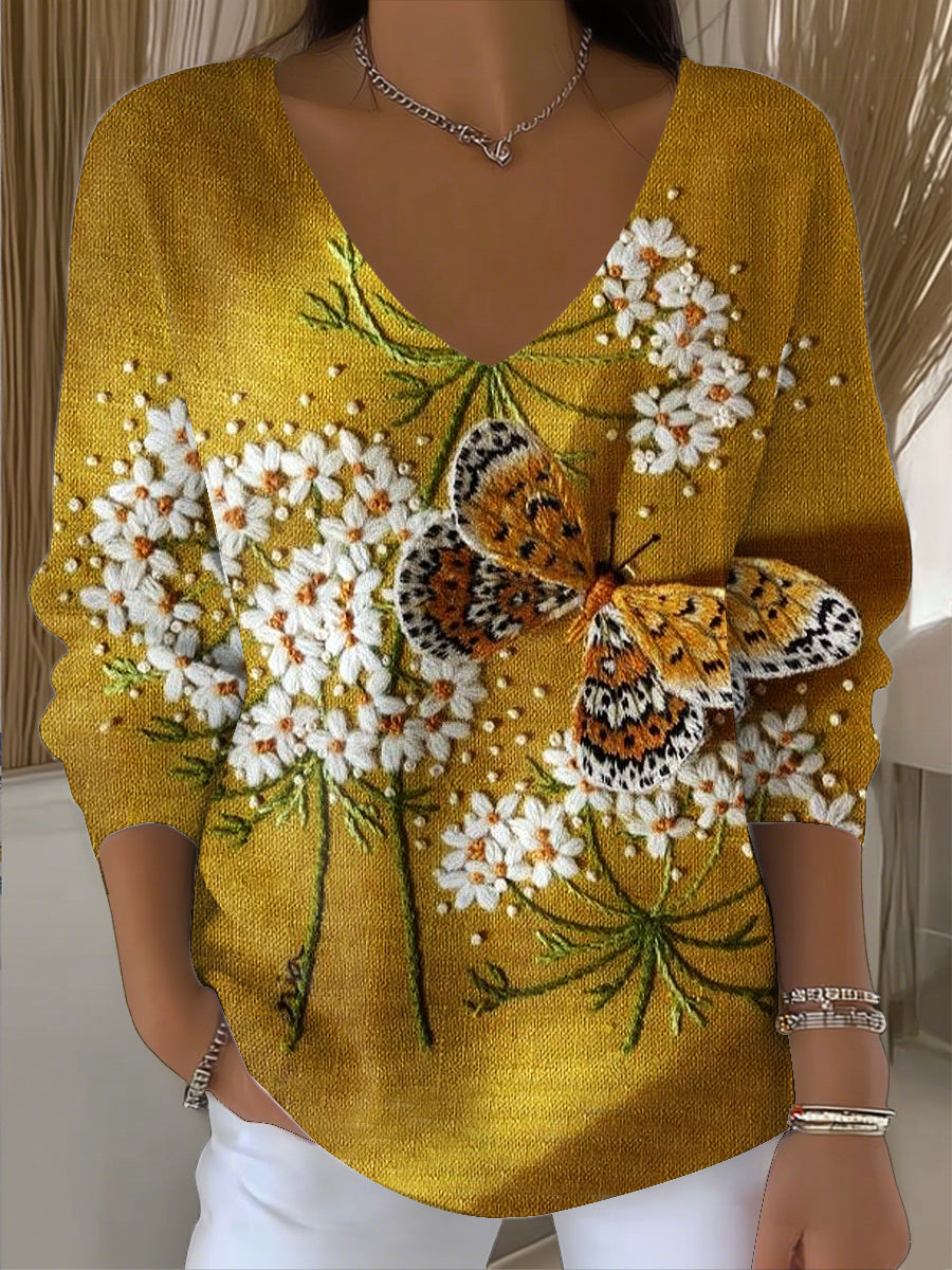 Γυναικείο Vintage πεταλούδα ανθρακική τέχνη V-λαιμό κορυφαίο