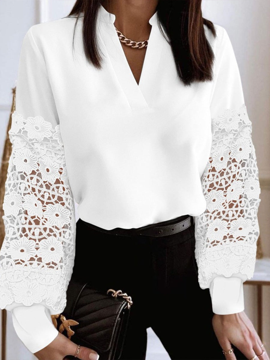 Γυναικείο περιστατικό V λαιμό δαντέλα μακριά μανίκι πουκάμισα