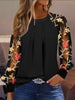 Γυναικεία περιστασιακή στρογγυλό λαιμό λουλούδια δαντέλα μακριά μανίκι πουκάμισο κορυφαίο