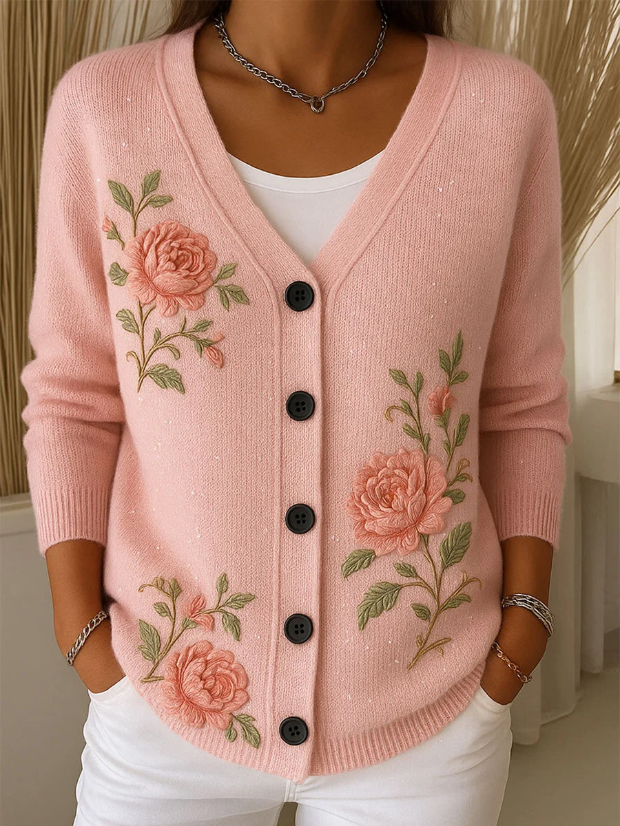 Γυναικείο Vintage Ανθισμένη Τέχνη Εκτύπωση κουμπί Cardign