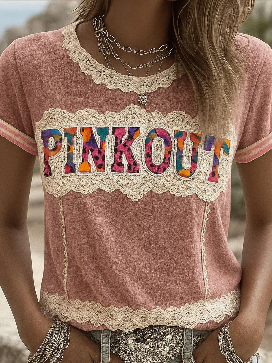 Γυναικείο Retro ροζ εκτύπωση άνετο Casual T-shirt
